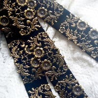 Gorgeous velvet belt with floral filigree motives in bronze, silver or gold tone.