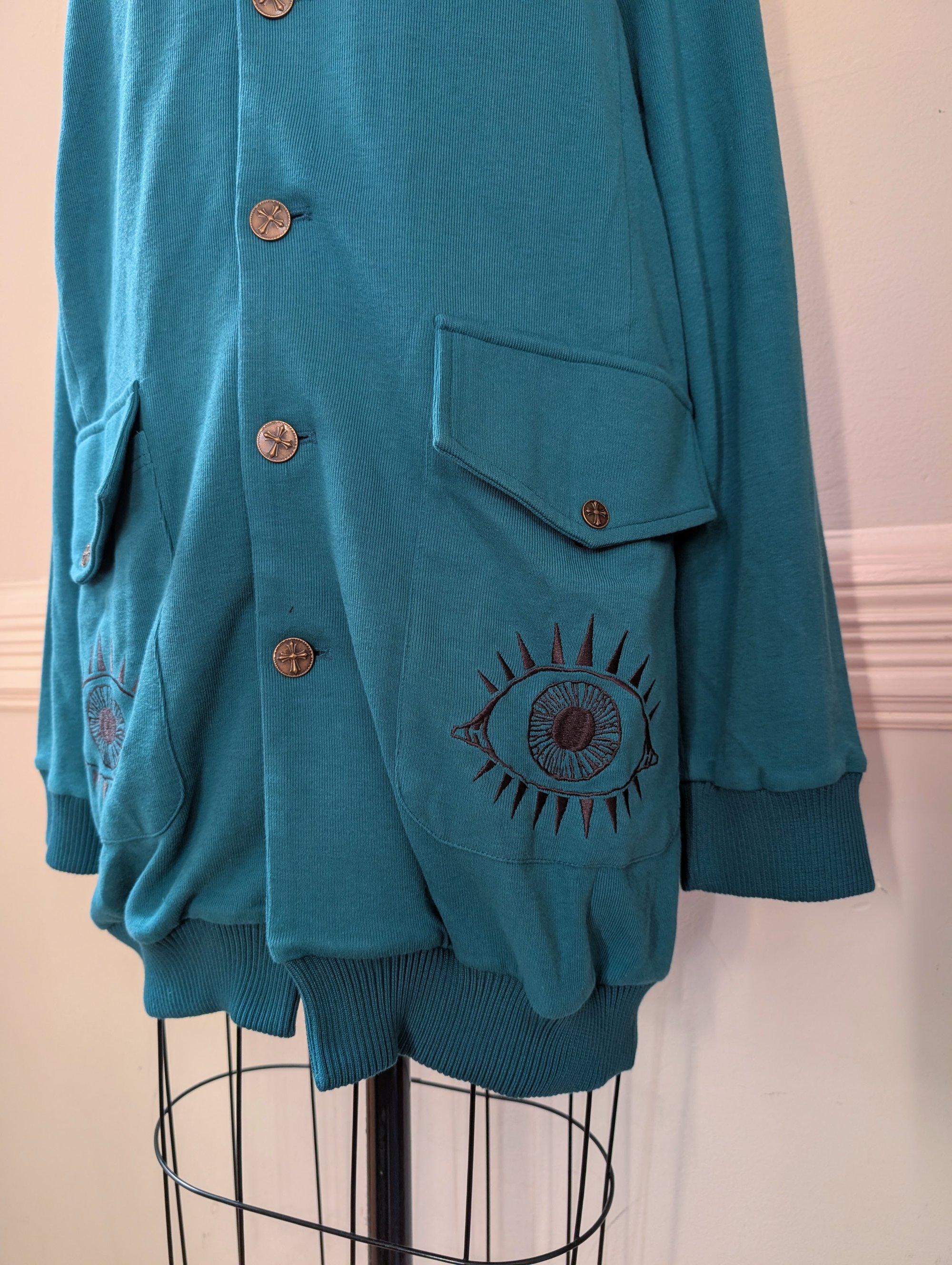 OZZON: Oversized Eye Embroidery Cardigan (Teal)